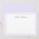 Flat, blank stationery notecards featuring a light lavender purple mosaic style border on a white background with your custom name. All colors are customizable.