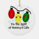 En uppsättning med tre helgdag ljus på en sträng med ögon och leenden och text som lyder "Jag är Mamma livets ljus" på anpassadet som bevarar ornament.