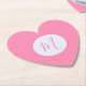 Heart shaped party paper coaster for your Mother's Day celebration or birthday party. Design features a fractal of light pink squiggly squares. Pink initial resides inside a white circle of squiggly squares.