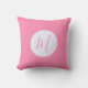 Throw pillow made special with a pink initial inside a white fractal circle of squiggly squares. Background is light pink squiggly squares. Make a room special for mom or your favorite lady. Lovely Mother's Day or birthday gift.