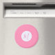 Magnet shows a fractal background of light pink squiggly squares. Pink initial resides inside a white circle of squiggly squares. Lovely "little extra" Mother's Day or birthday gift for mom. Could be a cool stocking stuffer, too.