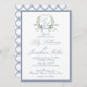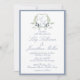 Inbjudningskort för invigningskort för lätt pulverblått romantiskt monogram Vapensköld. Blommigtens Vapensköld. Den mjukast blå. Vår och Sommar Bröllop.