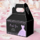 A beautiful light purple themed elegant watercolor dress gown on a black background with faux glitter at the top and bottom of the favor box.