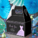 A beautiful light purple themed elegant watercolor dress gown on a black background with faux glitter at the top and bottom of the favor box.