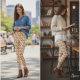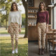 Light Tan Diagonal Plaid Subtle Weave Leggings