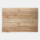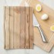En kökshandduk med ett foto av en lätt träpanel med knop.
