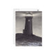 Black and white illustration of a lighthouse shining its navigation light beam in a dark night for the safety of a boat passing in stormy seas near the rocky ocean shore coastline. Concept by Lee Serenethos, Drawing by Jim Monahan. 1_lighthouse_night_ship_OPG200x10