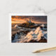 Waves break over the rocks, but the lighthouse stands fast as clouds gather in the evening on this beautiful postcard.