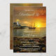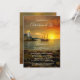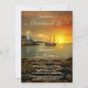 Ett unikt minnesmärke eller firande i livets inbjudan med en illustration av en vintage båt och fyr vid solnedgång. Det är symboliskt för att nå den slutliga destinationshamnen. På baksidan finns utrymme för ett anpassningsbar-foto.