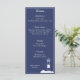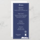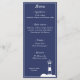 Elegant och enkel meny bröllop i marinblått vatten med en illustration av en fyr för ett marint och nautiskt tema bröllop!
