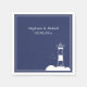 Elegant och enkla marinblåblöjor med en illustration av ett fyr för ett marint och nautiskt tema bröllop!