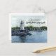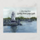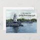 Ett souvenir-vykort med en vy som inspirerats av Vår Point Ledge Light i South Portland, Maine med en segelbåt i vatten på en moody dagshandling som färgats med vattenfärg. På insidan finns en koordinerande skugga av grönt och vit text som du kan redigera efter behov.