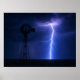 Lightning Strike Windmill Poster - Dramatic Texas
