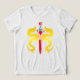 .A lightning-toned yellow dragon surrounds a sword in a powerful emblem style. Bright and bold, this shirt captures heroic fantasy energy.