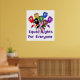 En bukett av ro i rött, gult, grönt, lavender, rosa, rött, svart och brunt kräver "Lika höger för alla". En bättre värld byggs av jämlika medborgare.