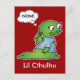Cthulhu är en fiktiv kosmisk enhet som skapades av skräckförfattaren H. P. Lovecraft 1926, som för första gången dök upp i artikeln "The Call of Cthulhu" i kort när den publicerades i Konstig Tales 1928. Cthulhu är en av Lovecraft Mythos centrala Underbar. Den nämns ofta för de extrema beskrivningarna av dess avskyvärda utseende, dess gigantuska storlek och den avskyvärda terror som den framkallar. I science fiction talas det ofta om Cthulhu och fantasikretsar som en tunga-in-cheek-kortand för extrem skräck eller ondska. Efter att Cthulhu för första gången infunnit sig i "The Call of Cthulhu", gör Cthulhu några mindre framträdanden i andra Lovecraft-artiklar.[1] August Derleth, en korrespondent för Lovecraft's, använde varelsens namn för att identifiera det malmsystem som användes av Lovecraft och hans litterära efterträdare, Cthulhu Mythos. (anpassad från Wikipedia) Lil Cthulhu från Orange Cat Blues är mycket mindre destruktiv än den Underbara Cthulhu. Hon bär blå dunkla pyjamas och drömmar hela tiden. (Hon har också en liten krock på Ensignera Fraidy!)