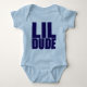 LIL DUDE i stort blått brev är underbart som en matchande BIG DUGE- och LIL DUDE-uppsättning för Far & Son. Den här kombinationen gör underbar ny pappa/Son-gåva, Fars dag-gåva, julklappar och mycket mer. Hämta kläder för pojkar och deras Pappor! Finns i baby-storlekar.