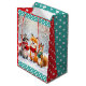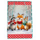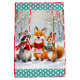 Kute julklapp med vackra skogsdjur i vattenfärg, en tvättbjörn, en räv och en ekorre som sjunger med en söt teal och röd bakgrund.