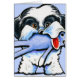 Teckning vid Andie av en svart och vit Shih Tzu som klappade vid sock monkey leksak. Roligtens gåva till Shih Tzu-hundälskare och rasentusiaster.