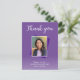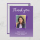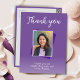 Lila 50:e födelsedag Foto Tack vykort. Bakgrunden är levande lila och texten är i vitt färg. Anpassa den med ditt foto, ditt namn och tackkort.