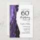 Lila, vit och guld agat 60-års födelsedagsinbjudan. Elegant modern design med vattenfärg agat marmor geod bakgrund, falskt glitterguld och typsnittsmanuskript. Trendig inbjudningskort perfekt för en stilfull kvinnas födelsedagsfirande. Tryckta Zazzle-inbjudningar eller direkt nedladdningsbar digital utskriftsbar mall.