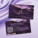 Modern affärskort för professionell av snyggt med QR-kod som innehåller lila agate geode, marble och faux guld accents accents personlig med trendigets calligraphy script monogram glitter. ÄNDRINGAR: Ändra textteckensnittet stil, färg, storlek och placering genom att klicka på REDIGERA i avsnittet PERSONALIZE. ASSISTANS: Om du vill ha hjälp med designändringar eller anpassning, ändrar färg, överför designen till en annan produkt eller vill samordna objekt kontaktar du designern INNAN ORDERING via Chattan Zazzle MESSAGE eller e-post makeitaboutyoustore@gmail.com.
