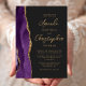 Den lämnat kant i eleganten i den moderna bröllopsinbjudan har en lila vattenfärgsagat gräns som trimmas med faux guld glitter. Anpassadet guld-färgad kombinerar ett modernt handskriftsskript och sans serif typsnitt på en svart bakgrund. Den omvända sidan har en matchande lila- och guld-agate-design.