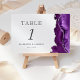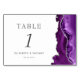 Det moderna bordsnumret bröllop i höger i eleganten har ett lila vattenfärgsagat i gräns som trimmas med faux silver kant. Anpassadet kombinerar grått Roman serif, italic och copperplate typsnitt på vit bakgrund.