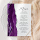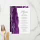 Den moderna bröllop-menyn i elegant har en lila vattenfärgsagat gräns som trimmas med faux silver glitter. Anpassadet kombinerar handskriftsskript för kol-grått och sans serif typsnitt på vit bakgrund. Lila och silver agate-konstruktionen upprepas på baksidan.