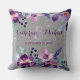 Ta med dina bröllopsminnen hem med denna lila blommande silverglittrande bröllopskudde, en souvenir som blandar romantik och raffinerad design. Med vattenfärg lavendel pensé blommande bröllopsmotiv i rik plommon, mjuk lila och luftig violett ton, fångar den essensen av ett romantiskt plommon lila vårbröllop. Den violetta lyxiga botaniska eleganta chica bakgrunden i kombination med elegant script bröllopspersonalisering skapar ett utseende som känns djärvt chic modernt feminint sofistikerat.