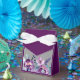Lila akvarell blommande och silver glitter bröllop presentaskar