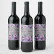 Lila akvarell blommande och silver glitter bröllop vinflaska etikett