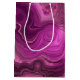 En presentsäck med en abstrakt elegant. Mörk lila ametyst färg med rosett band i guld som ligger mellan skiktade strata. Rik och vacker design.