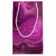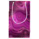 En presentsäck med en abstrakt elegant. Mörk lila ametyst färg med rosett band i guld som ligger mellan skiktade strata. Rik och vacker design.
