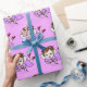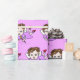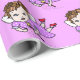 En vacker, handritad, fantasifull folkkonst stil änglar med en lila klänning presentpapper för en liten flickas födelsedag.
