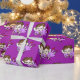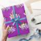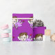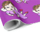 En vacker, handritad, fantasifull folksagestil ängel med lila klänning presentpapper för en liten flickas födelsedag.