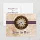 Den här antika låset Spara vykortet för datum har en vintage som är framträdande centrerad ovanpå en metall boll-kedja och en snygg lila stripe gräns. Det plågade utseendet på den grungande pappra struktur-bakgrunden fullbordar det föråldrade intrycket av denna unika utformning. Det här offslaget sparar datumet för vykortet är perfekt för att tillkännage din vintage eller Stampunk inspirerad bröllop. Enkel att anpassa, lägg bara till information om bröllop i de medföljande utrymmena. Klicka på "Anpassa" om du vill söka efter ytterligare alternativ för att anpassa den här designen.