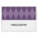 Klassiskt och elegant Argyle Bröllop Bordsnummer Card med enkel lila diamantstilbakgrund i mönster. Enkel att anpassa med din bröllop-information. Om du vill ha fler anpassningsalternativ klickar du på knappen Anpassa.