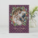 Elegantens lila och guld-fotojulkort med ett geometriskt foto ram omgivet av en vattenfärgskrans på en lila och en svart buffelbakgrund. Anpassa enkelt dessa lila julkort med bilder, text och familj namn.