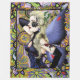 Blonfairy med lila och rött i blommigtens geometriska mönster av grönt, ålder, lavender och rosa.