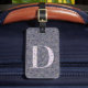Klassisk bagagetagg med monogrammet med ditt första monogram i grönt på blommigtens gult mönster. Lägg till kontaktinformationen på baksidan.