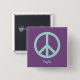 Med en knapp för lila och blå återkoppling har den här designen en blå fredssymbol. Anpassa ditt namn med blått kursivt teckensnitt i lila bakgrund. Ställe din beställning i dag! Fredssymbolteckningar skapat av: Pretygrafik-design (https://www.etsy.com/shop/Prettygrafikdesign)