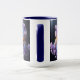En vacker, levande, skäggig iris för in trädgården med mugg.