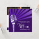 Grafikkortskrovgrafik i stil och röstprojicering i linjer med eget foto eller egna foton på det omvända skälet bjuder in lila och vitt. Perfekt till familjer och vänner i inbjudan för att uttrycka, sjunga eller öppna mikro-, musikaliska eller talande skäl. Anpassa med din egen händelseinformation. Andra matchande artiklar är tillgängliga. © Unik design och illustration by Sarah Trett for www.mylittleeden.com (bak fotoplatshållarfoto av Obie Fernandez on Unsplash).