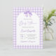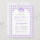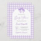 Lila Bow Baby Shower-inbjudan med Neutralt med bog, lavender gingham-inbjudan till babydusch