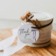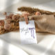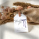 Moderna tack-taggar för dina bröllopsduschgåvor med handritad lila båge. Perfekt för en modern och minimalistisk "Hon knyter knuten"-tema till möhippa.