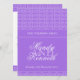 Dubbla-sidig, enkel mönster lila bröllopsmiddagsmeny. Anpassa med din egen måltid i bröllop.