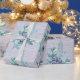 Ett vackert presentpapper med blåa bär och blåa glitterfjädrar på ett grovt papper med djup lila bakgrund