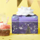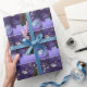 En nattbelysning med mycket lila. Ett stort Julgran med snö och trädgårdar runt. En roligt julklapp.