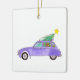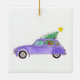 Lila bil med julklappar julgransprydnad keramik